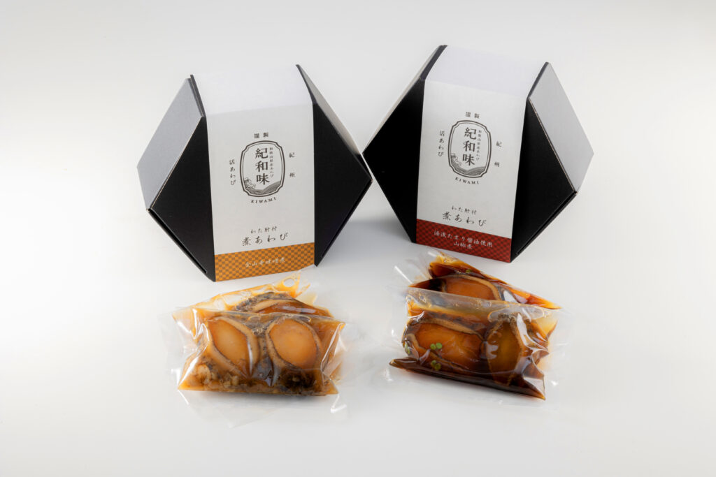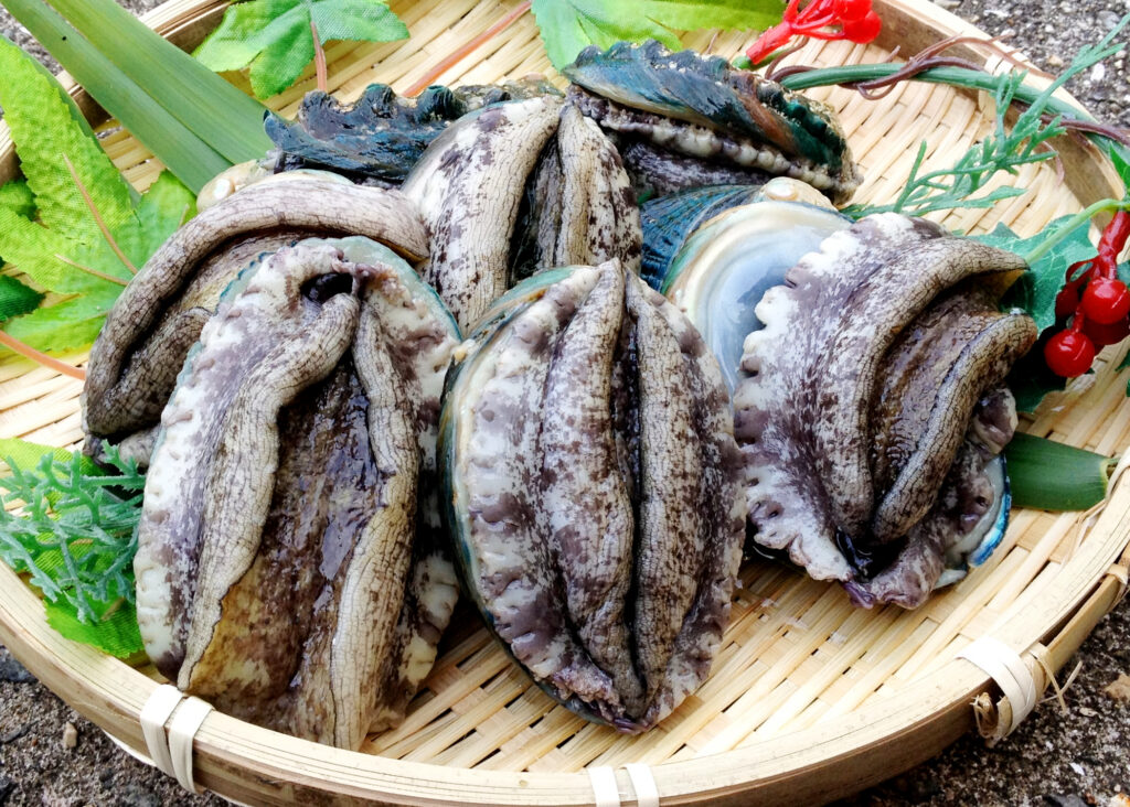 餌は地元湯浅湾で水揚げされた生ワカメと天然海藻を使用したアワビ専用の配合飼料を給餌しています。雑食の天然アワビとは違う計画的な給餌を行うことにより、成貝になるまでの期間を約2年半から3年も短縮することができました。